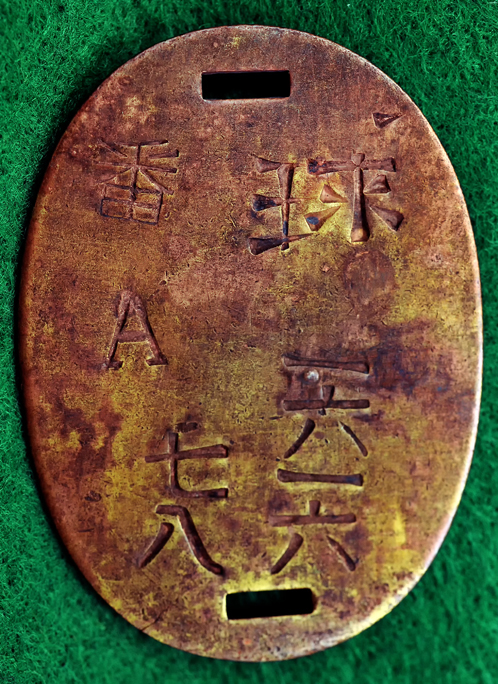昨年、糸満市摩文仁の「島守の塔」下にある「軍医部の壕」から出土した、旧日本陸軍兵士の2枚の認識票の身元調査を厚生労働省にお願いしました。ほぼ6ヶ月後、調査結果が返送されて来ましたが、身元の手がかりにつながるものは何一つ判明しませんでした。球1616A78球1616 O80沖縄で戦った兵士らの認識票は、部隊名や出身地、氏名などを書き込んだ原本となる「留守名簿」が、焼却処分されて存在しないため、まず身元判明に繋がることは難しいとされています。でも、万に一つの希望を持って、調査をお願いしましたが、予測した通りダメでした=写真左右、軍医部の壕から出た2枚の認識票球1616が部隊名でOやAは血液型、78番、80番は個人の識別番号。